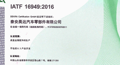 公司擁有IATF16949:2016國(guó)際標(biāo)準(zhǔn)質(zhì)量管理體系認(rèn)證,擁有實(shí)